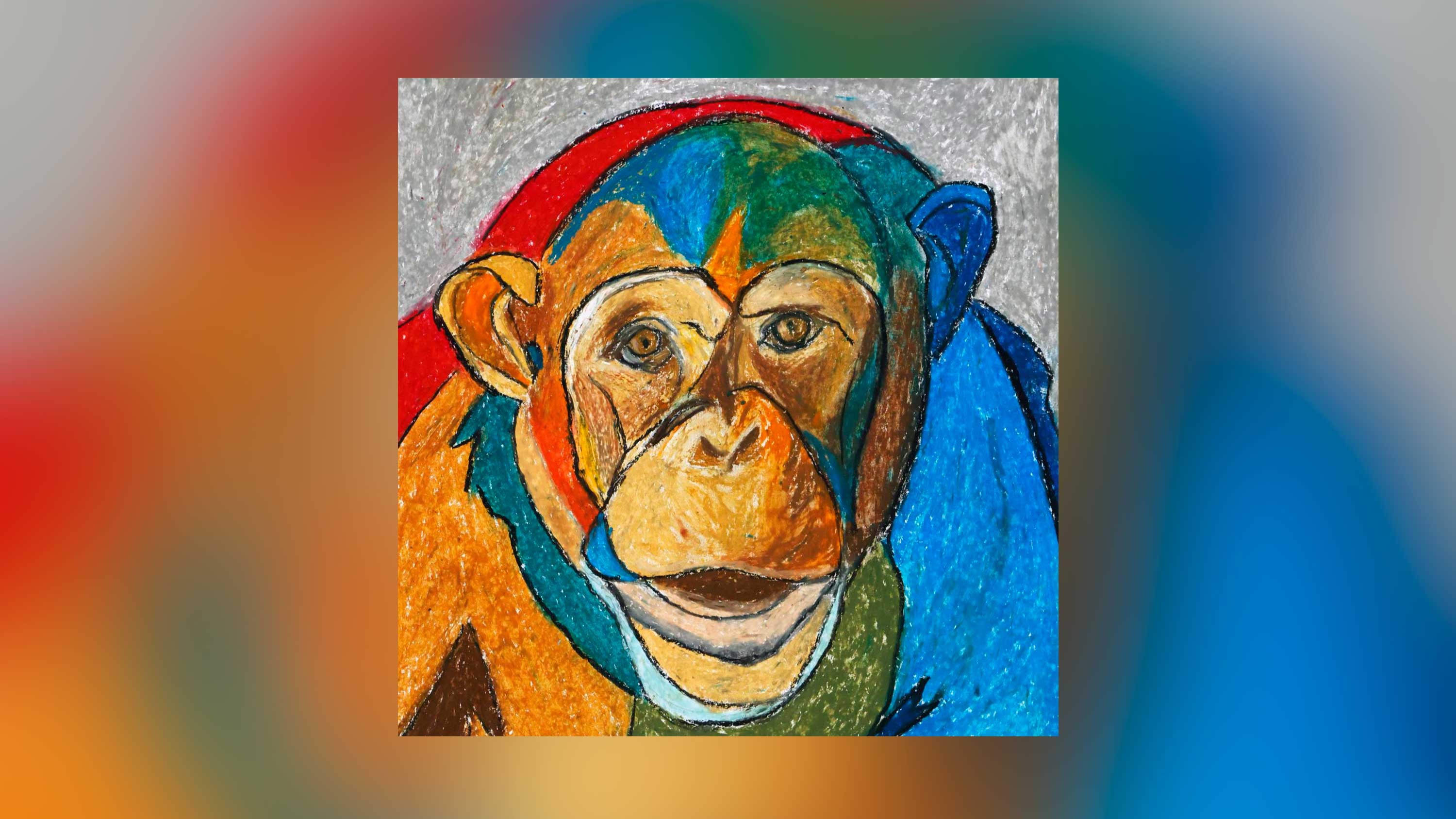 Alle Schimpansen, die von dieser amerikanischen Organisation gerettet wurden, habe ich in Ölkreide gemalt - nein - ich bin noch dabei.